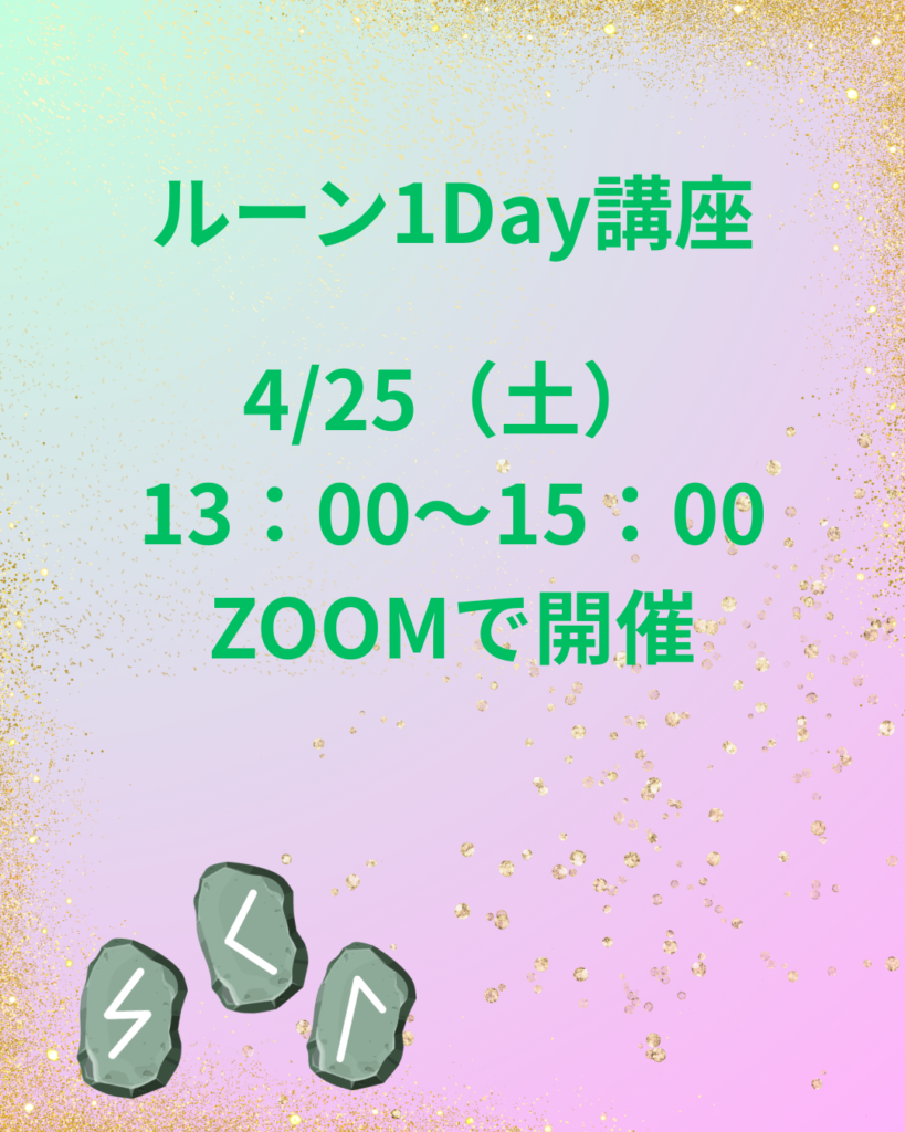 4/25(土)13:00~15:00 ZOOMでルーンの1Day講座を開催します